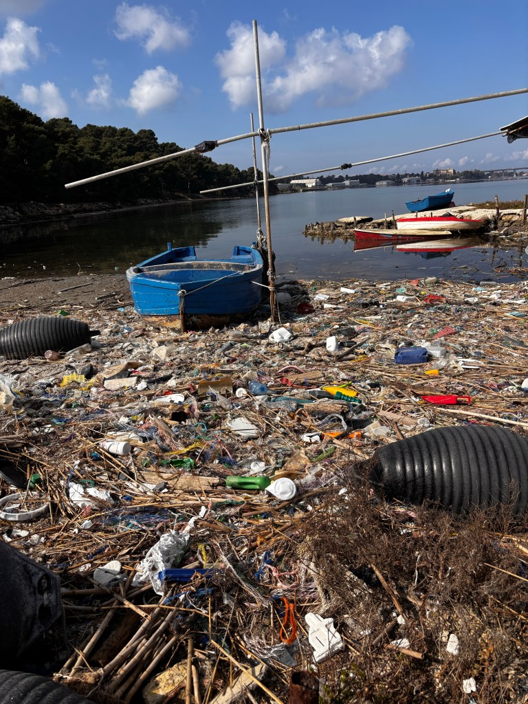 Tunnelmaa ei varsinaisesti kohottanut näky merestä rantautuneesta muovista. Rannalle oli ajautunut ainakin seitsemän metriä leveä kaistale pelkkää muoviroskaa. Näky oli tyrmäävä. Siinä kohtaa ajattelin, että ehkä en kuitenkaan tilaisi Tarantossa kala-annosta. Ja mieluummin en edes ajattele, kuinka paljon mikromuovia täällä päätyy lautaselle.